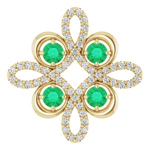 14K Yellow Natural Emerald & 1/6 CTW Natural Diamond Clover Pendant